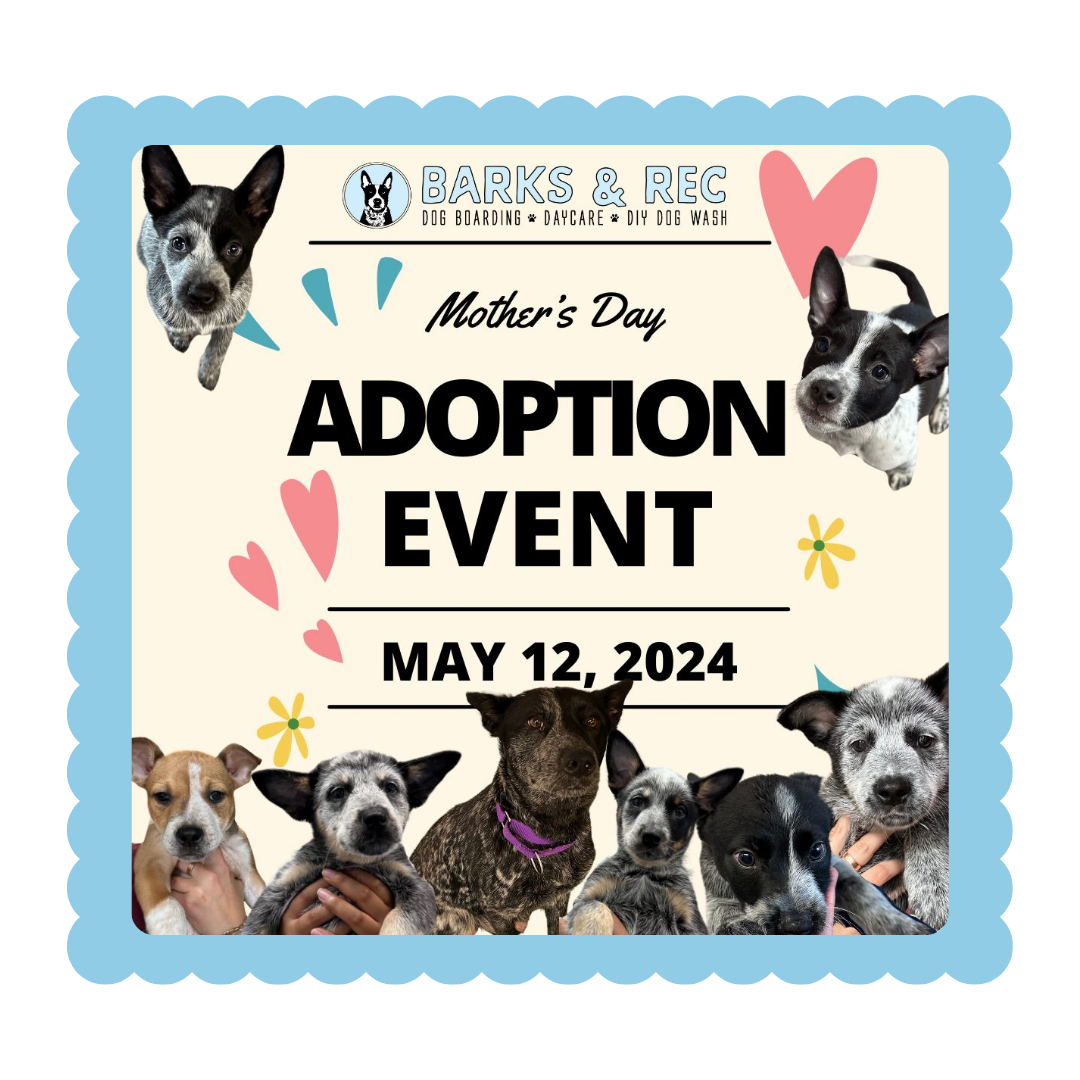 At Barks & Rec, we had the absolute pleasure of fostering Ruby, an incredible Blue Heeler mom, and her adorable litter of pups for Aggieland Humane Society. As Mother’s Day approached, we aimed to spread love and joy by hosting a special adoption event on Sunday, May 12th. Our goal was simple: to find Ruby and her puppies their forever homes.